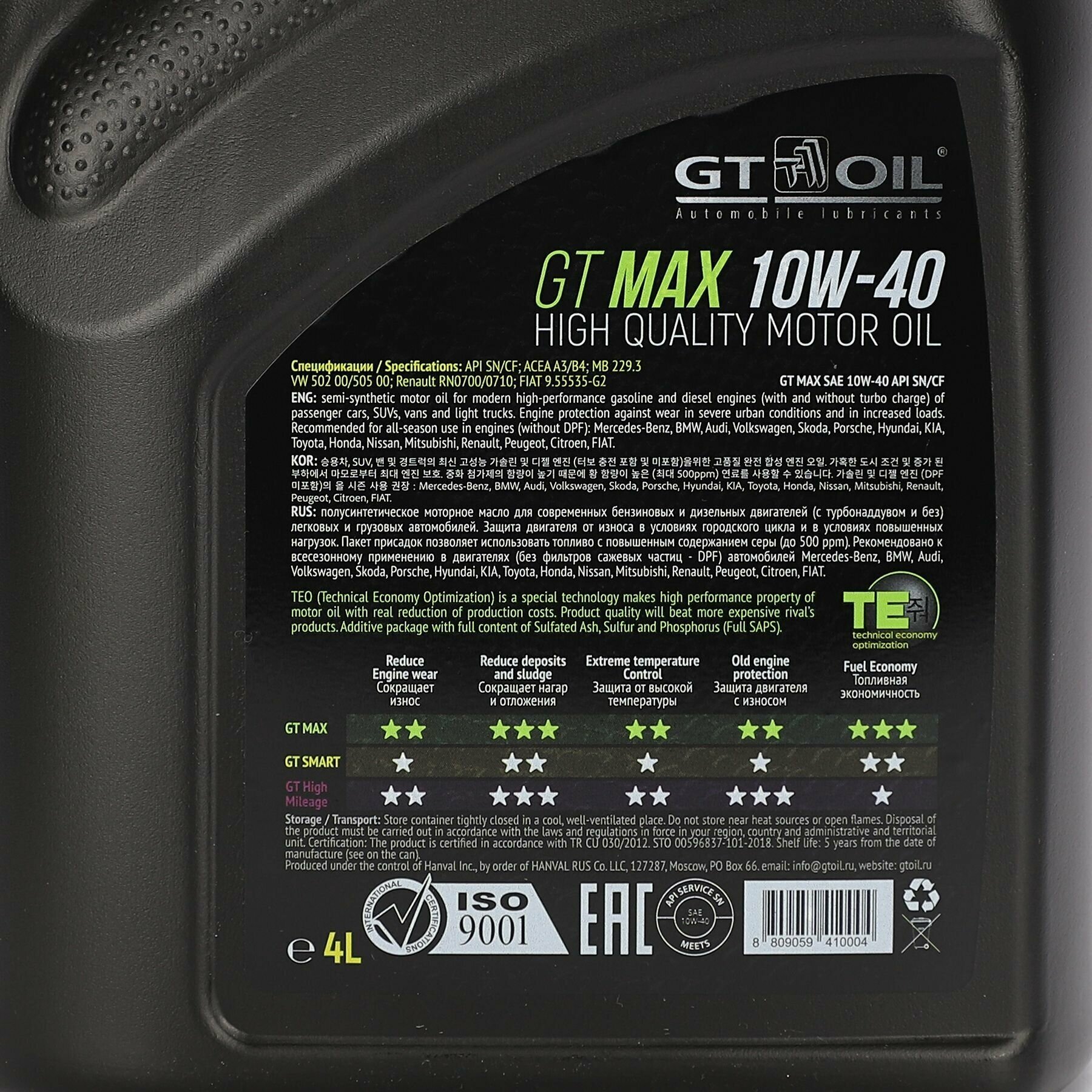 GT OIL Масло Моторное Gt Max 10W40 Api Sn/Cf 4L информация: