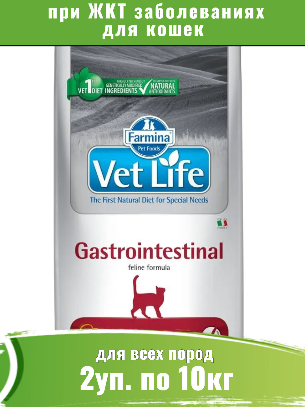 10 цен на Farmina 2уп по 10кг Vet Life Cat для кошек с желудочно-кишечными заболеваниями