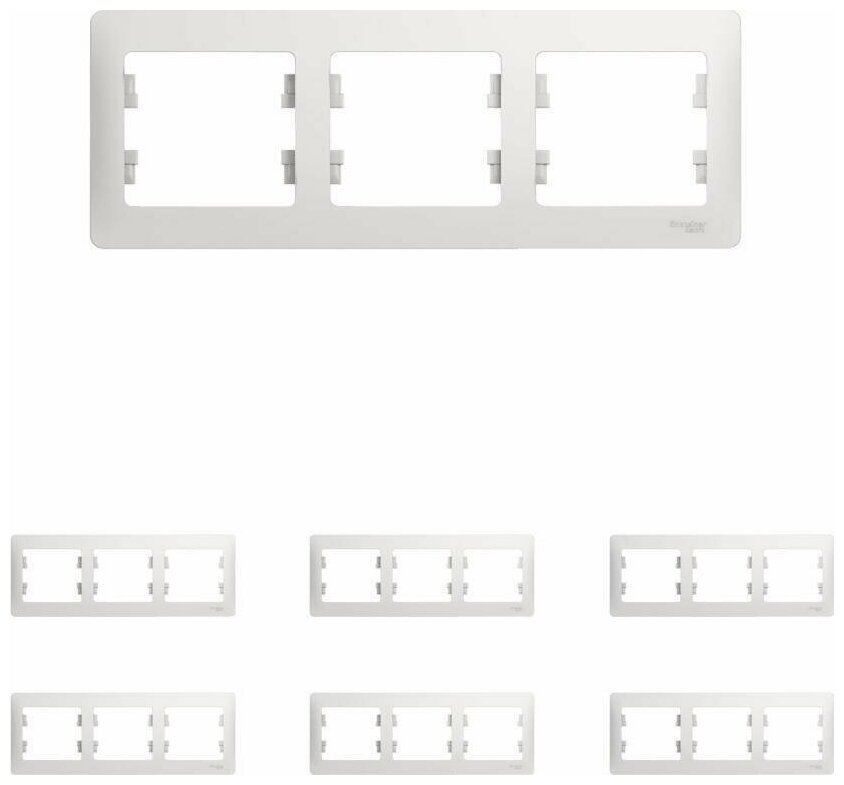 10 цен на Рамка Schneider Electric Glossa трехместная горизонтальная белая (комплект из 6 шт)