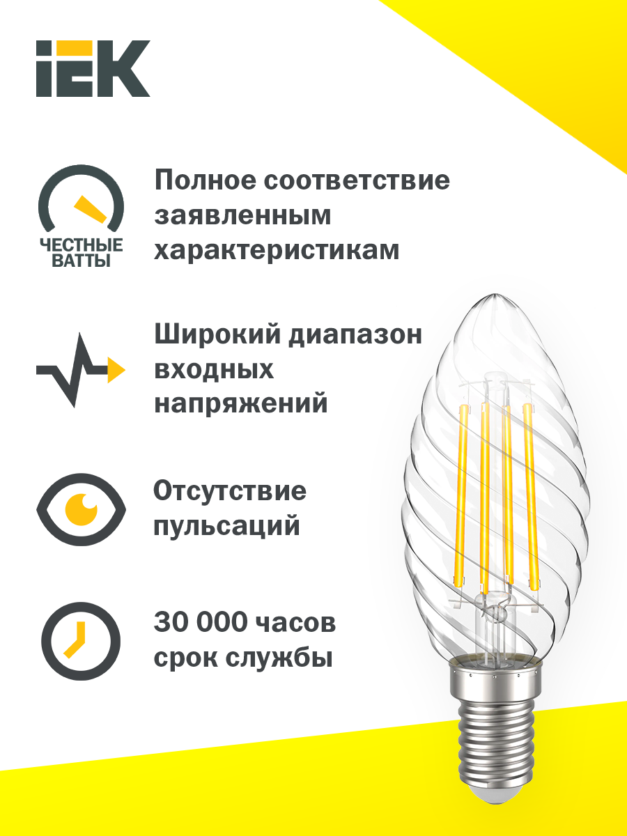 Iek LLF-CB35-5-230-40-E14-CL Лампа LED СВ35 св.н ветру 5Вт 230В 4000К E14 серия 360