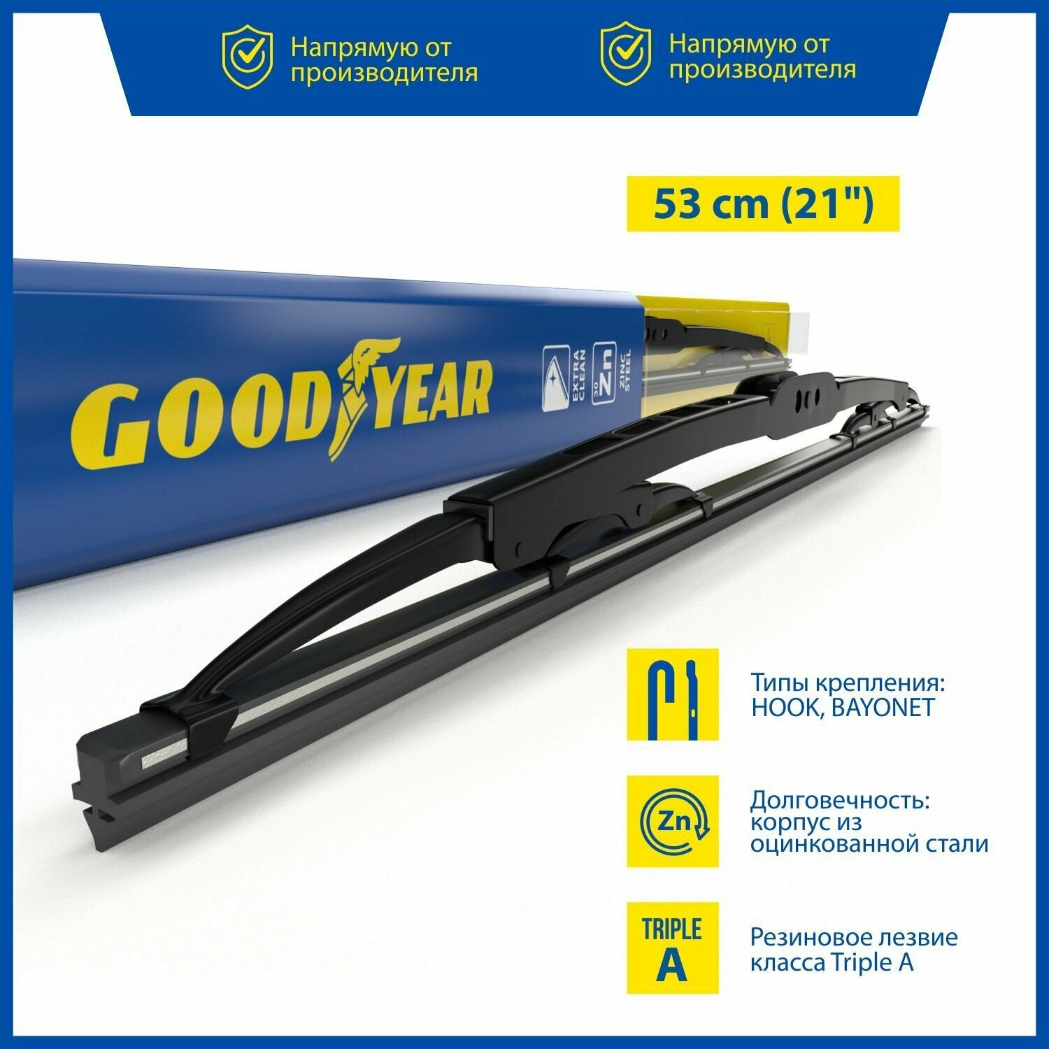 Goodyear Каркасная щетка стеклоочистителя FRAME 21"/53 cm всесезонная, 3 переходника GY000321