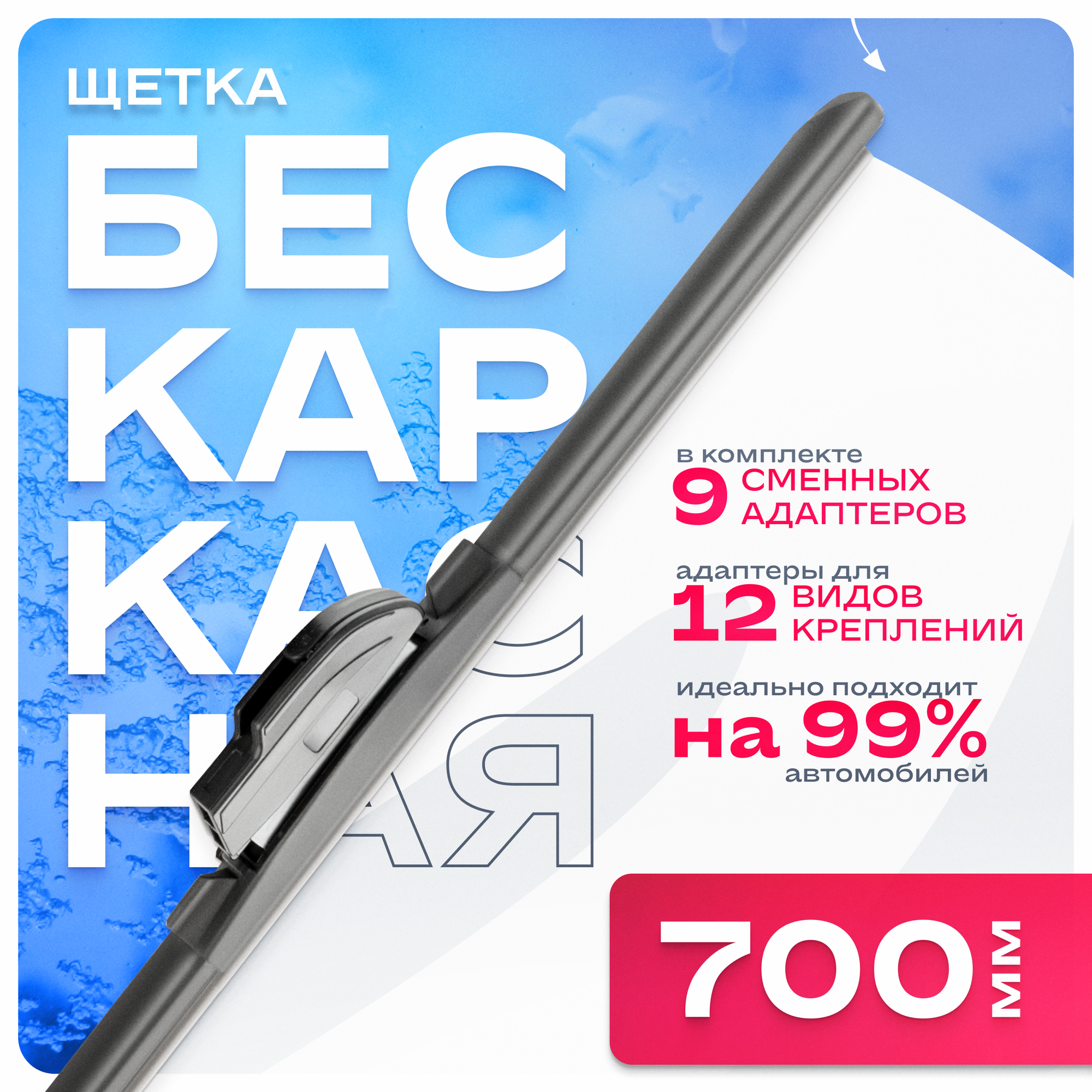 Щетка стеклоочистителя бескаркасная SKYWAY 700 мм, 9 адаптеров S02701070 информация: