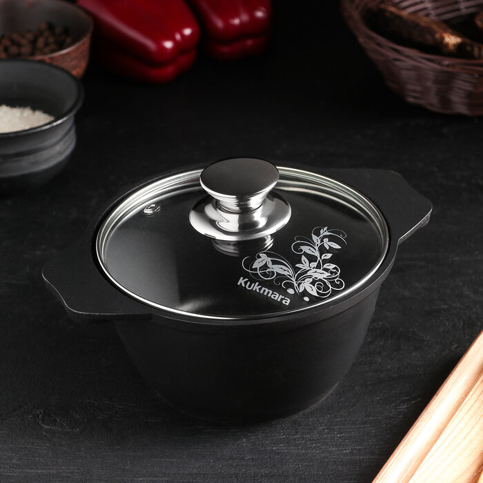Кастрюля Маруся 7001-26к с индукционным дном со стеклянной крышкой, 5,5 л, цвет черный
