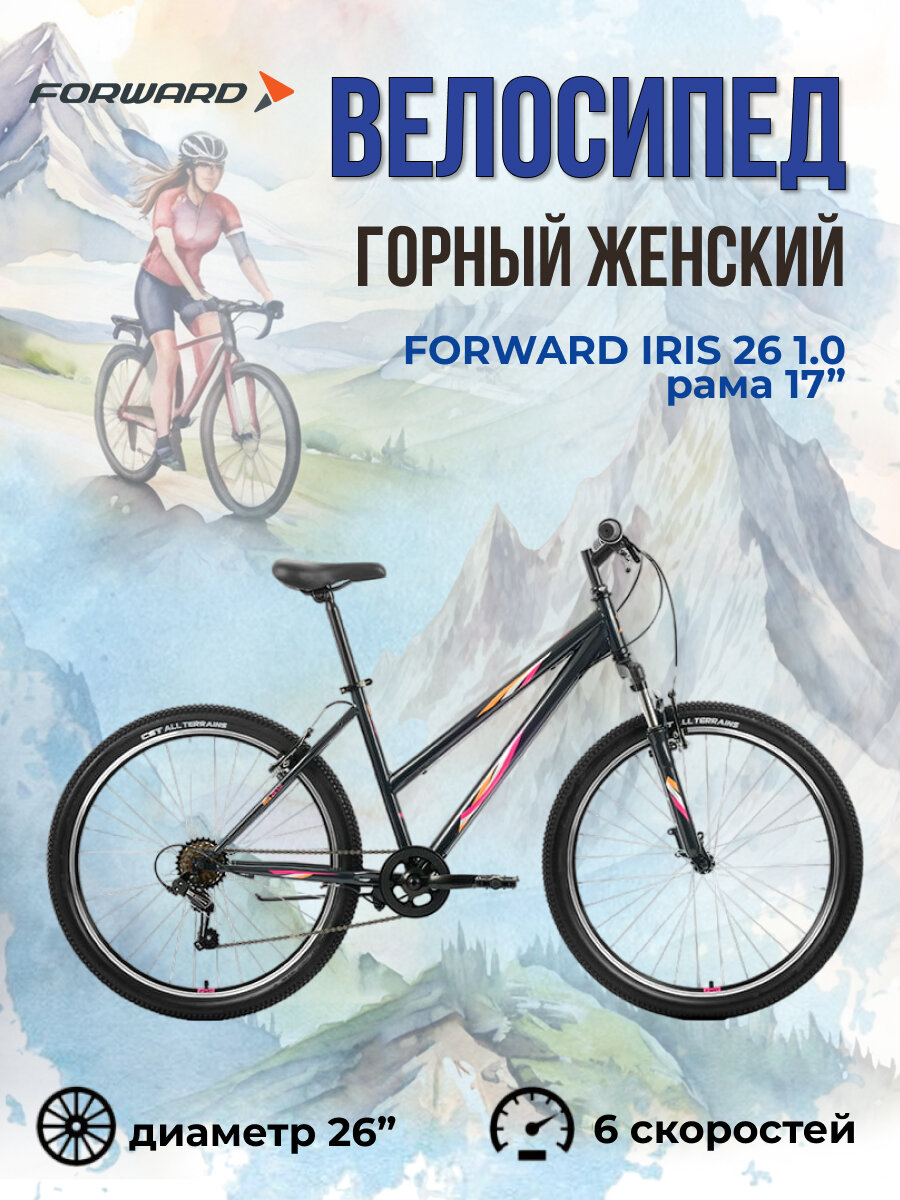 Отзывы на Велосипед горный женский с колесами 26" Forward Iris 26 1.0 рама 17" серо-розовый 6 скоростей 2022 год