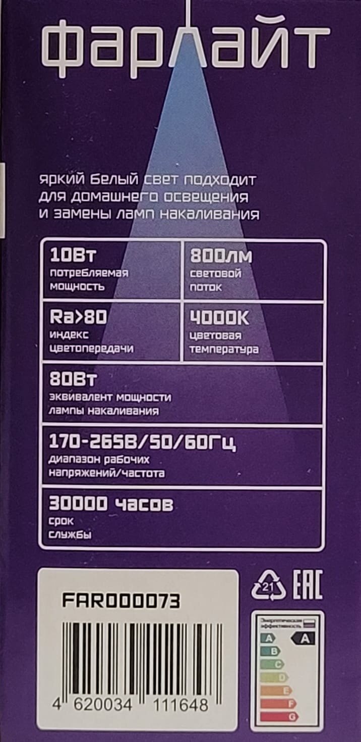 Светодиодная лампа "Шар" G45, 10Вт, E27, 4000К, Фарлайт информация: