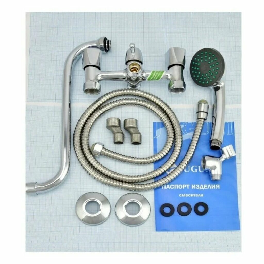 10 цен на Смеситель ванно-душевой двуручный "Juguni" с металлическим шлангом и хром. лейкой, JGN0130, кран-бук
