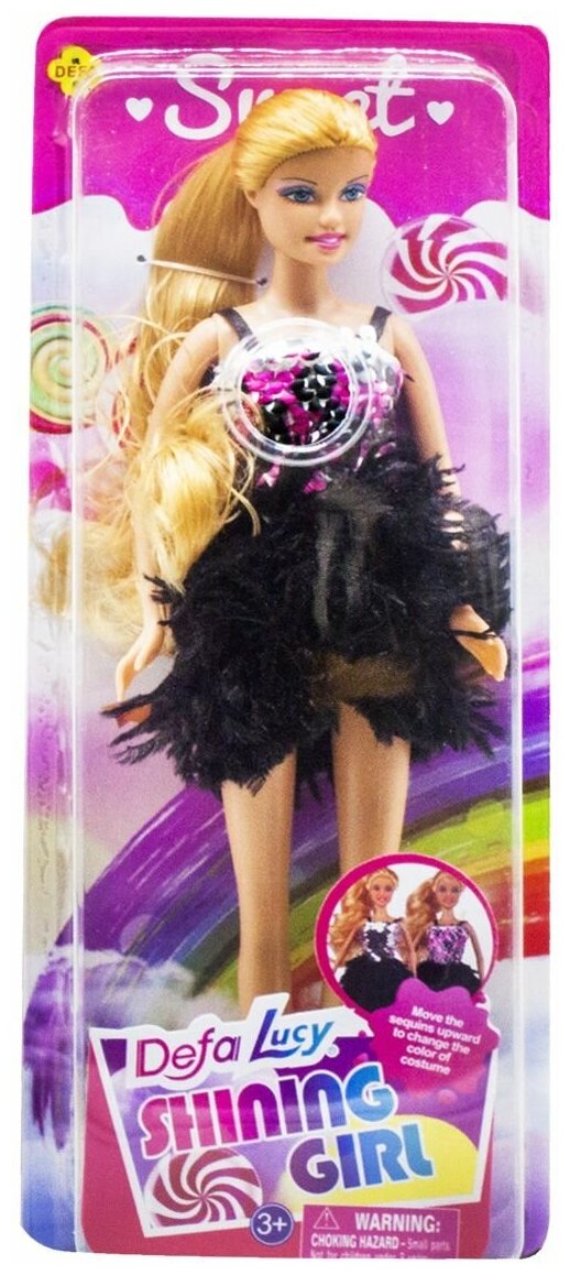 Кукла Defa Lucy Модница в платье с пайетками с разноцветным верхом и черной пышной юбкой, 29 см 8434d/модель1