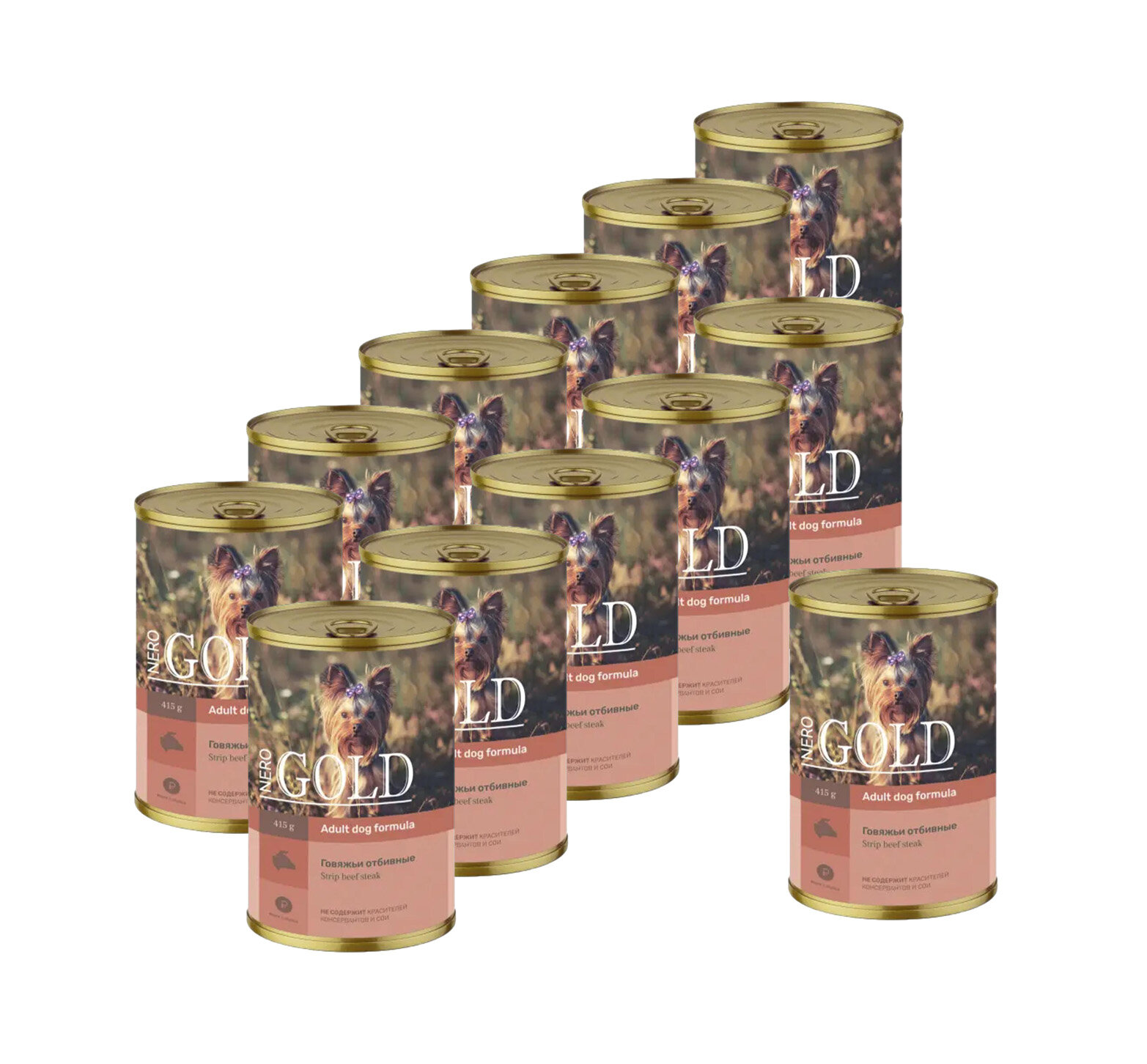 NERO GOLD ADULT DOG STRIP BEEF STEAK для взрослых собак говяжьи отбивные банка 415 гр 415 гр х 12 шт