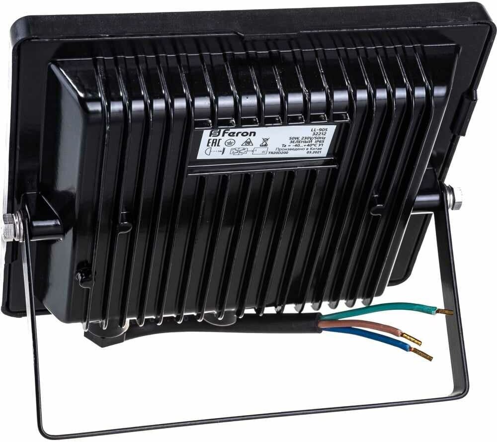 Светодиодный прожектор FERON LL-905 2835 SMD 50W зеленый AC220V/50Hz IP65, черный в компактном корпусе, 205*161*40 мм 32212