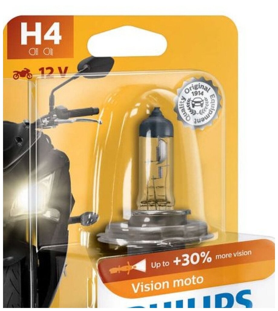Галогенные лампы H4 (60/55) P43t-38+30% Vision Moto (блистер) 12V PHILIPS 12342PRBW/Мотоциклетная лампа