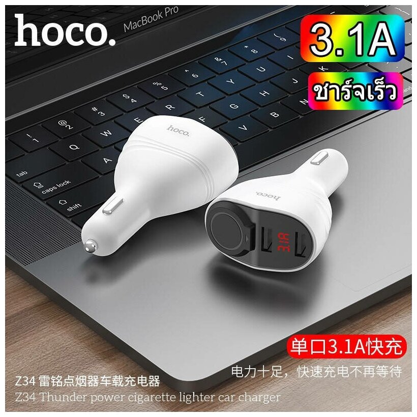 Автомобильное зарядное устройство Hoco Z34 Thunder Power с цифровым дисплеем, двойным USB выходом и портом прикуривателя 3.1 А, черное