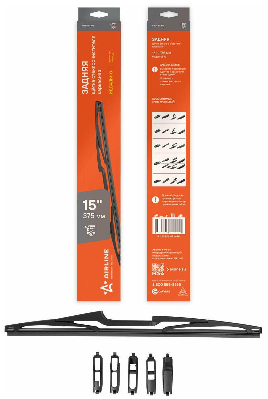 Щетка стеклоочистителя 375 мм (задняя, каркасная) 5 адаптеров, AIRLINE информация: