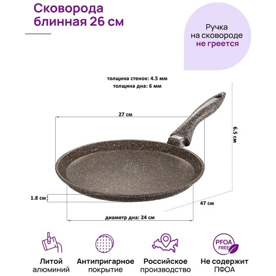 Сковорода блинная Elan Gallery гармония вкуса "Коричневый опал" 26 см информация: