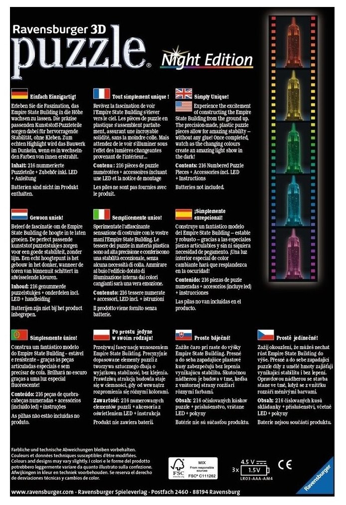 3D пазл Ravensburger Ночной Эмпайр Стейт Билдинг, 216 эл. 12566