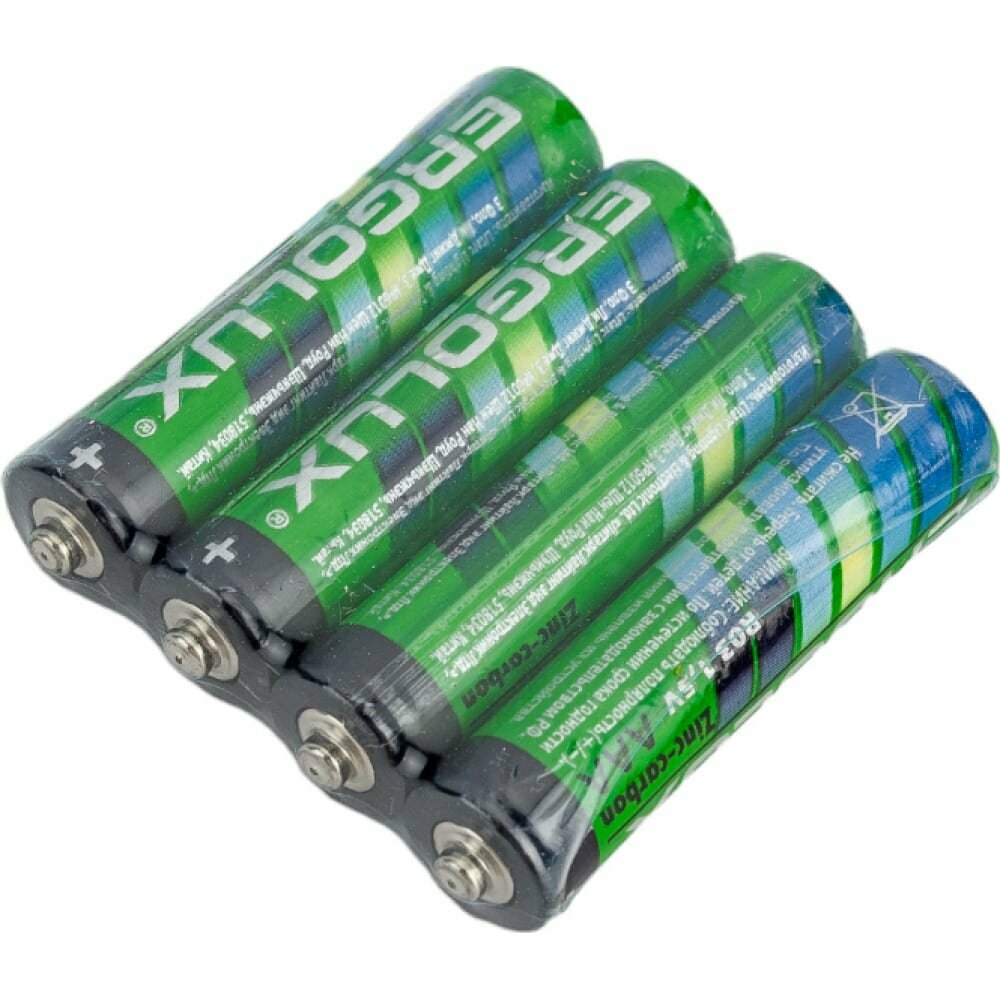 Батарейка Ergolux, ААА (LR03, R3), Zinc-carbon, солевая, 1.5 В, спайка, 4 шт