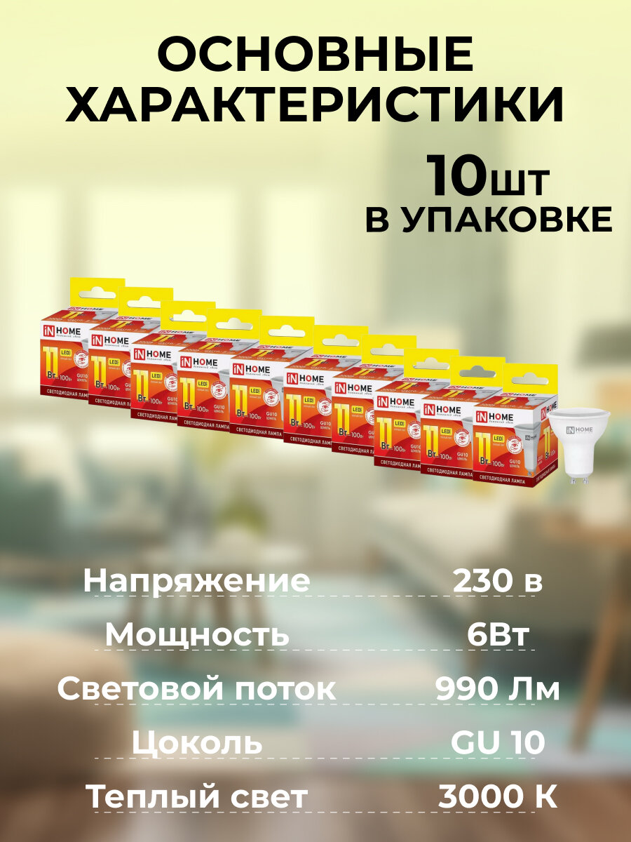 Отзывы на Лампа светодиодная LED-JCDRC-VC INHOME 11Вт, GU10, 990Лм, 3000К, теплый белый свет, 10 шт
