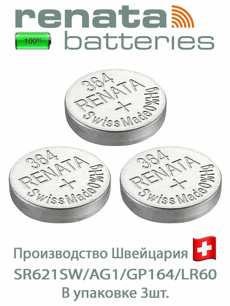 10 цен на Батарейка Renata 364 Швейцария, упаковка 3 шт.