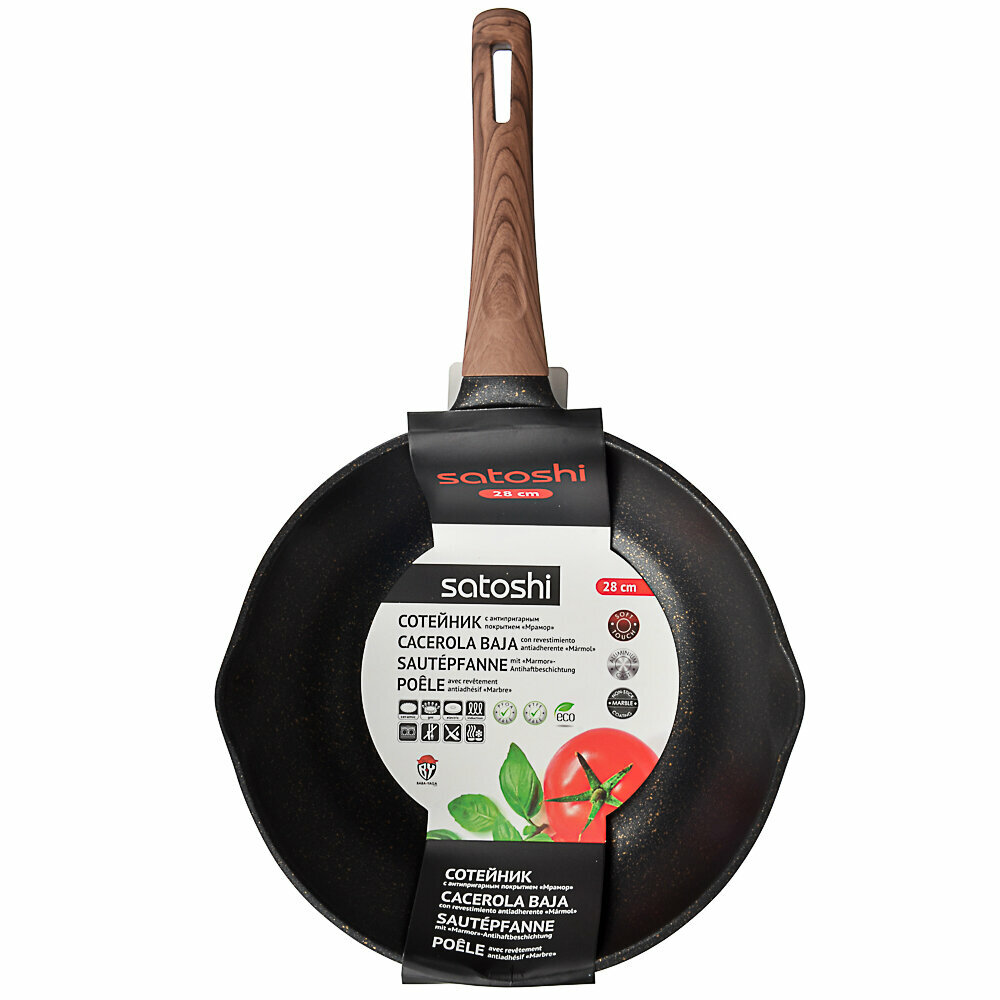 10 цен на SATOSHI Карнуа Сотейник литой d28см, антипригарное покрытие Мрамор, индукция
