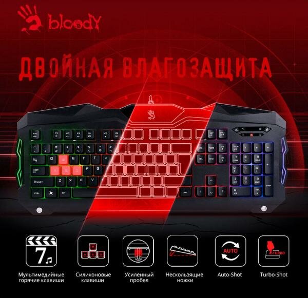 Клавиатура A4Tech Bloody B210 Black USB 2 190 ₽