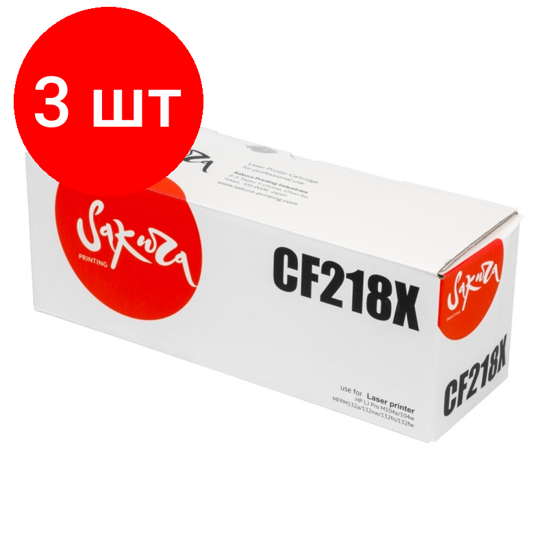 Комплект 3 штук, Картридж лазерный SAKURA 18A CF218X чер. пов.емк. для HP LJ Pro M104/M132 информация: