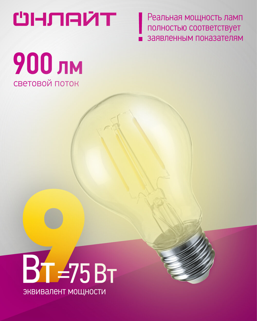 Лампочка ОнЛайт OLL-F-A60-09-230-2.7K-E27 80 874