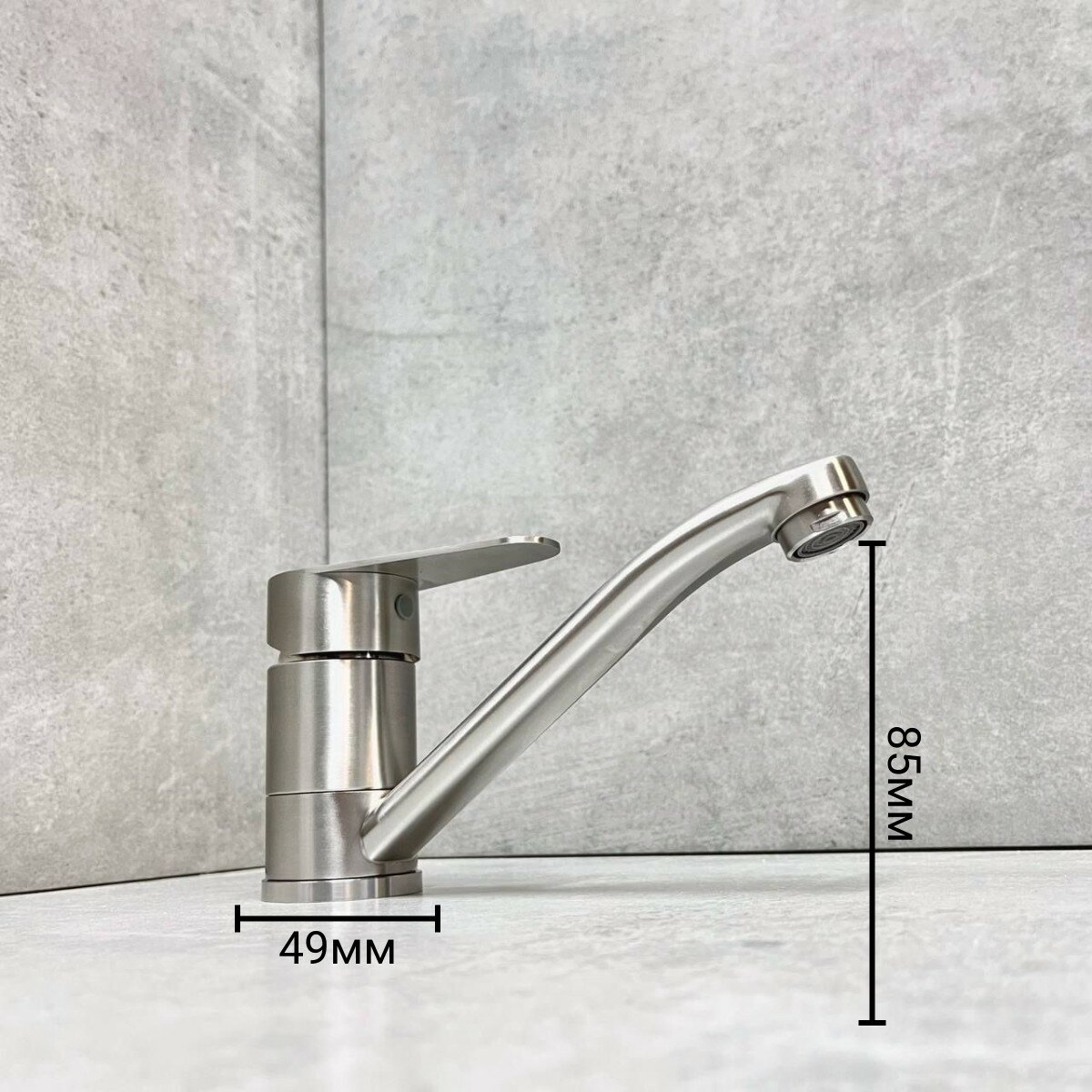 Haiba Смеситель для кухни (нерж.сталь) плоский короткий пов.излив,картридж 40мм,гайка,сталь,HB45802 информация: