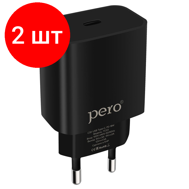 Комплект 2 штук, Зарядное устройство сетевое PERO TC03 PD 18W черный информация: