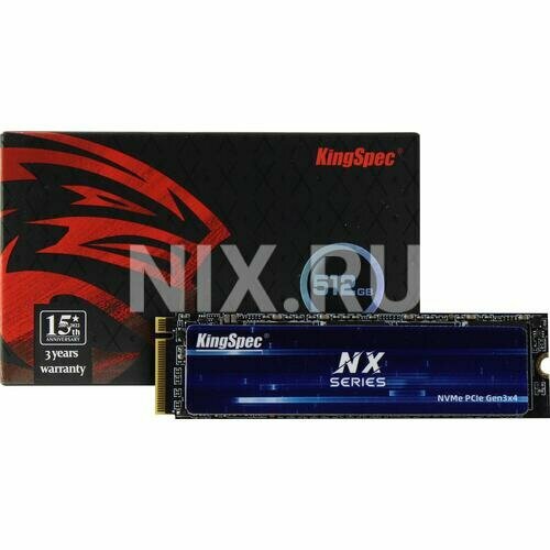 Внутренний SSD M.2 KingSpec 512Gb NX Series /NX-512 2280/ (PCI-E 3.0 x4, up to 3400/2500MBs, 3D NAND, 250TBW, NVMe 1.3, 22х80mm)