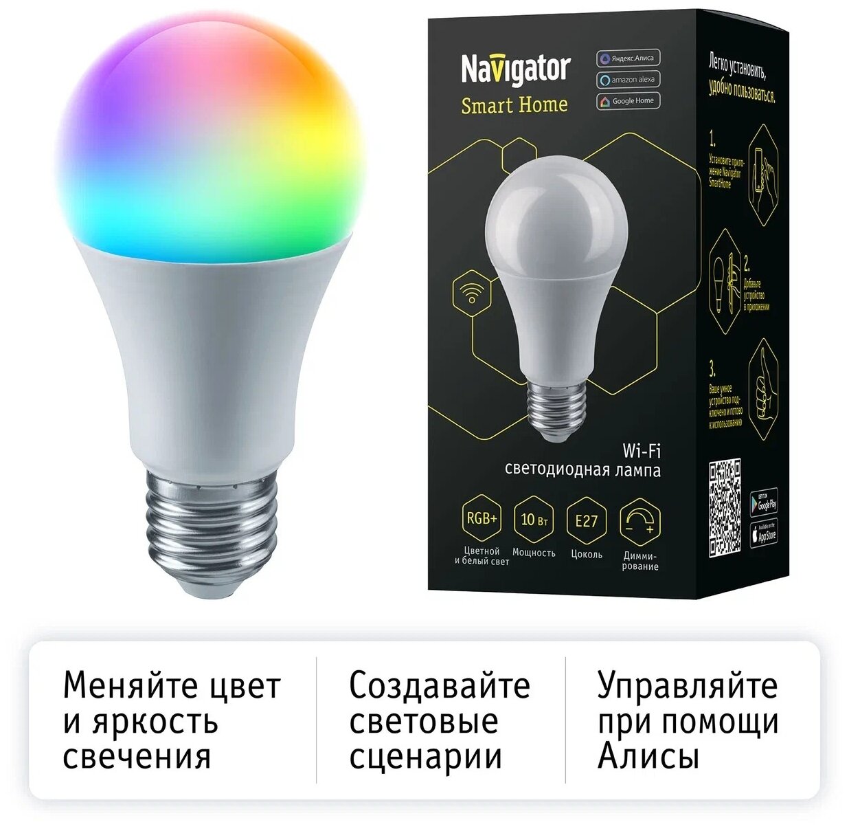 Лампа Navigator 14 554 NLL-A60-10-230-RGBWWW-E27-WIFI 14554 1 718 ₽