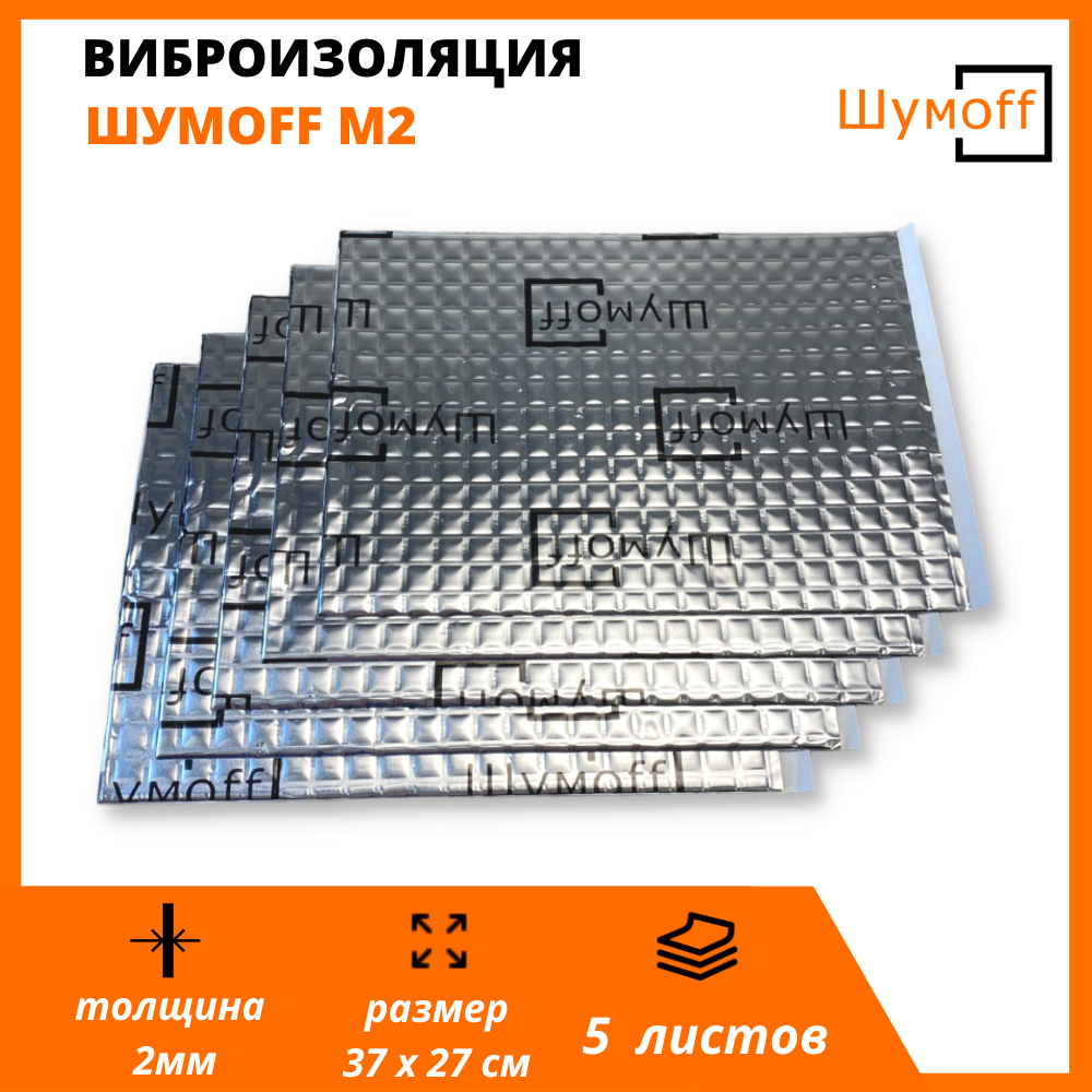 Виброизоляция Шумоff M2 / Вибродемпфер Шумофф М2 (5 листов) / размер листа 37см х 27 см / Для автомобиля / Авто / Машины