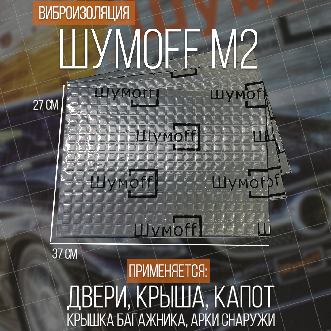 Шумоизоляция авто, Звукоизоляция, Виброизоляция для автомобиля Шумофф М2 упаковка 14 листов 37х27 см Вибродемпфер для пола, арок, багажника