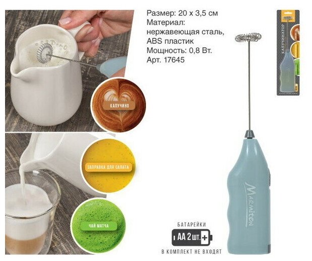 Капучинатор-вспениватель для молока, коктейлей, соусов, работает от батареек 2*АА (в комплект не входят) MARMITON 266 ₽