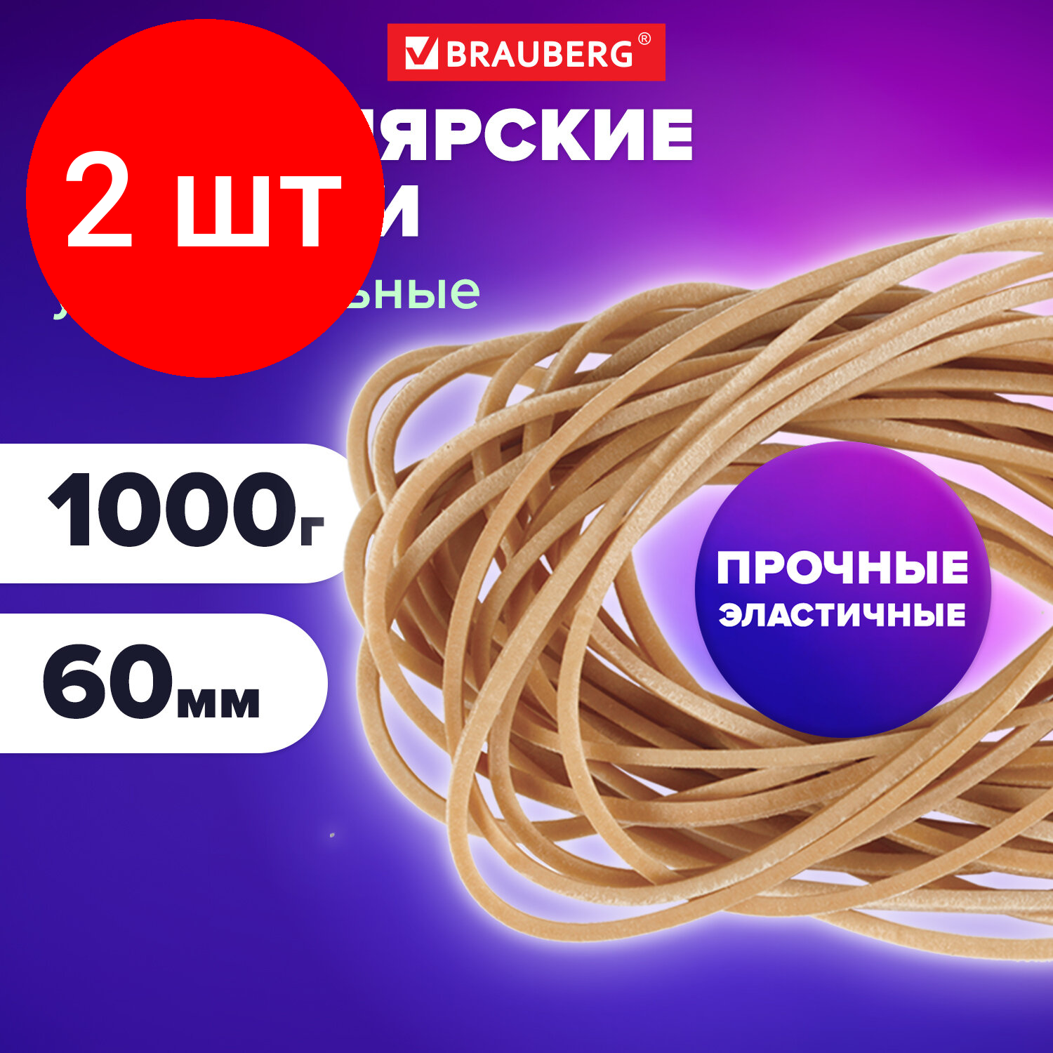 Комплект 2 шт, Резинки банковские универсальные диаметром 60 мм, BRAUBERG 1000 г, натуральный цвет, натуральный каучук, 440052 информация: