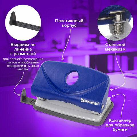 Дырокол BRAUBERG "Original", до 20 листов, синий, 222540