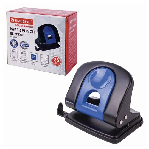 Дырокол металлический BRAUBERG "Office-Expert", до 25 листов, черно-синий, 228604 В комплекте: 1шт.