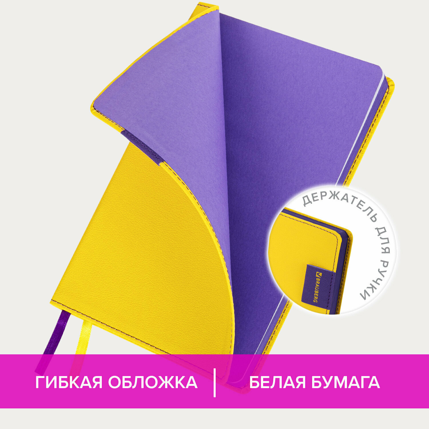 Ежедневник-планер (планинг) / записная книжка / блокнот недатированный А5 (138х213 мм), Brauberg Aim, под кожу, фиолетовый, 136 листов, 113424