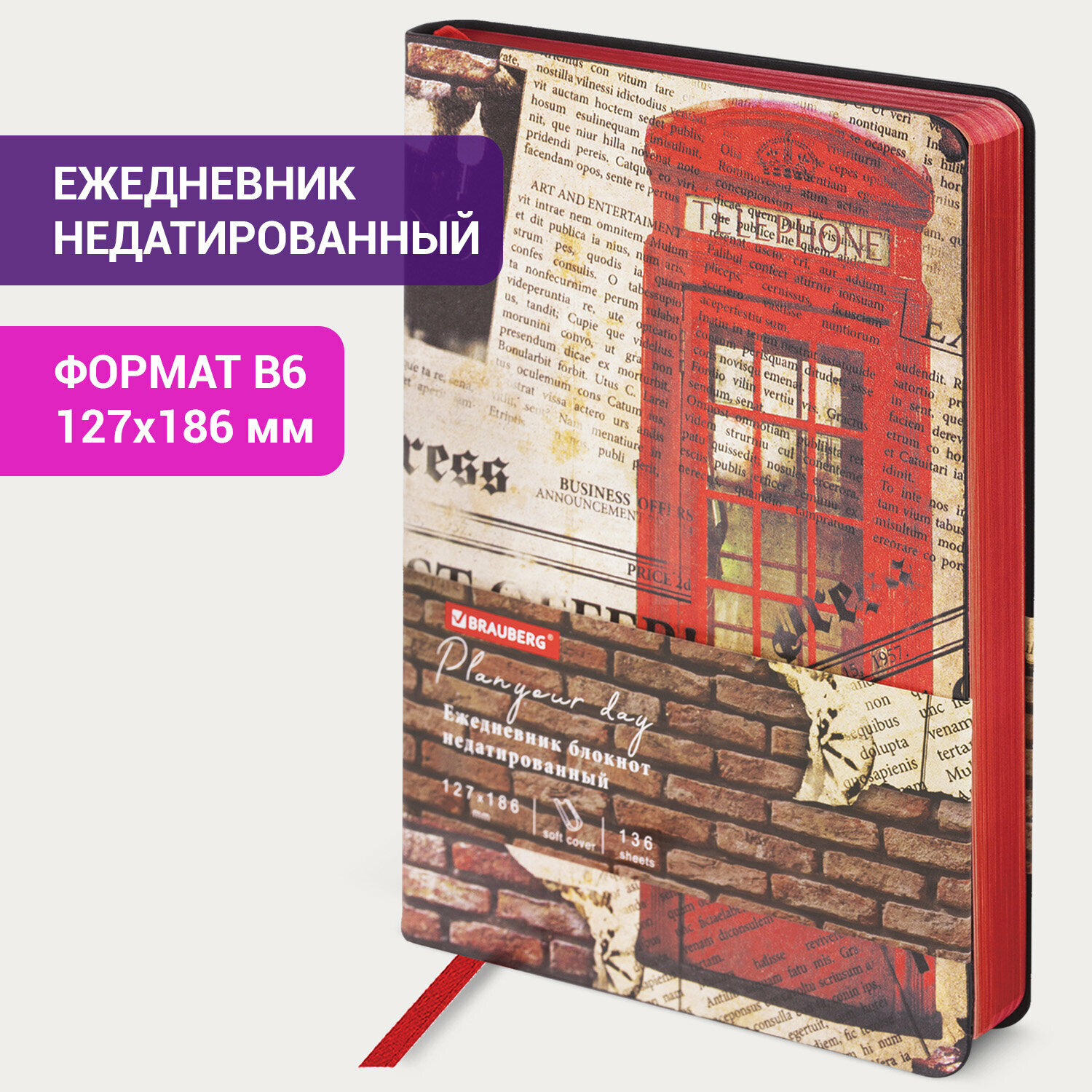 Ежедневник недатированный B6 (127×186 мм), BRAUBERG VISTA, под кожу, гибкий, 136 л., «Good old England», 112107 информация: