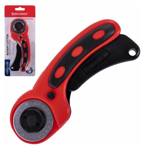 Нож раскройный роликовый Brauberg 45 мм, professional, круглое лезвие, резиновые вставки