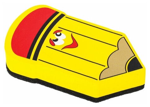 Стиратель магнитный для магнитно-маркерной доски юнландия «Карандаш», 55×100 мм, желтый с рисунком, 237507 /Квант продажи 1 ед./