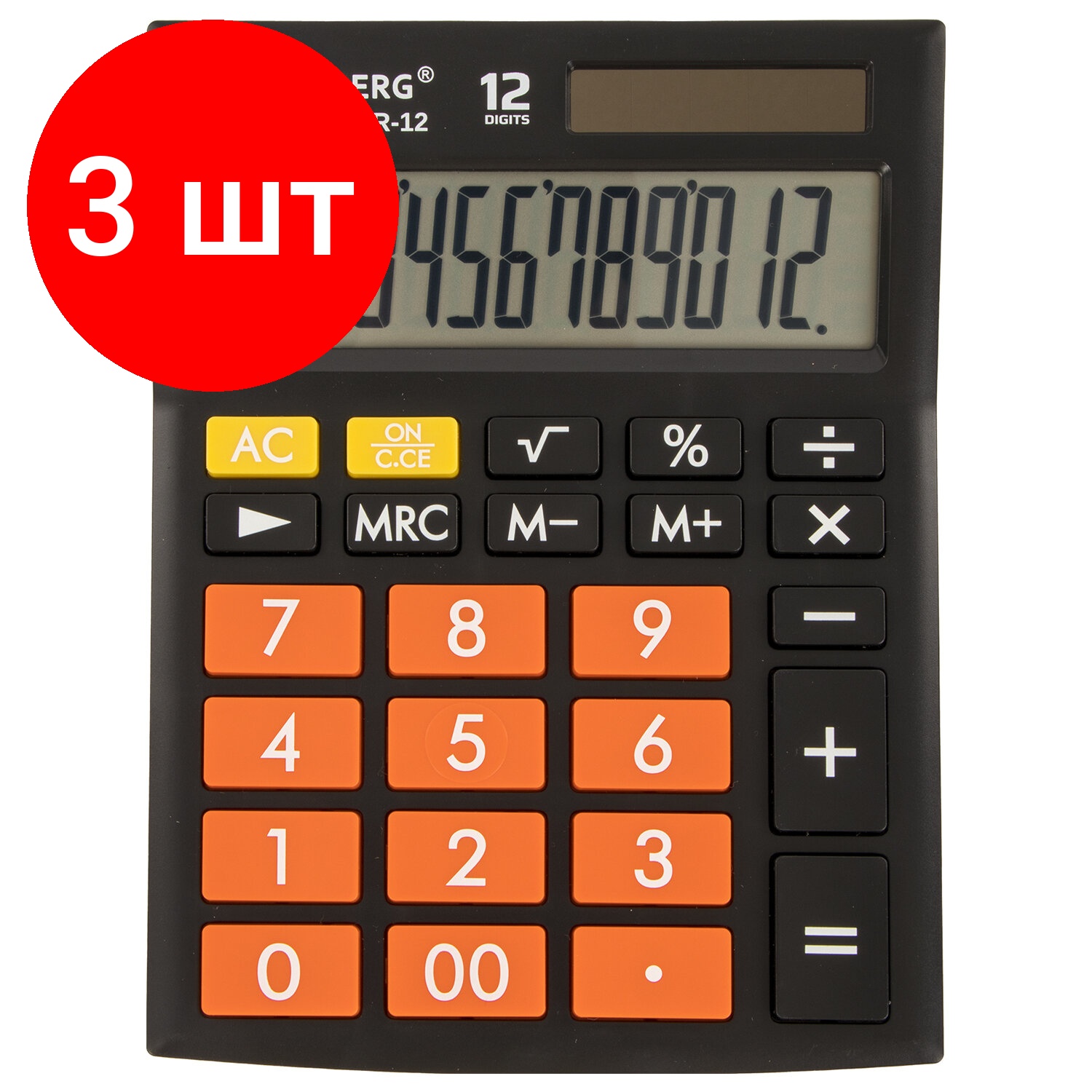 10 цен на Комплект 3 шт, Калькулятор настольный BRAUBERG ULTRA COLOR-12-BKRG (192x143 мм), 12 разрядов, двойное питание, черно-оранжевый, 250499
