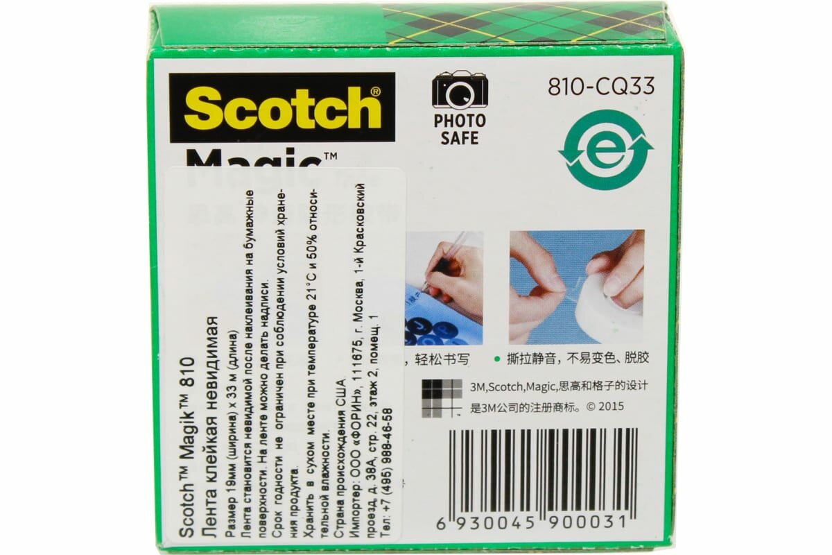 Scotch Лента невидимая клейкая 810 Magic в коробочке, 19мм х 33м 7100024666 информация: