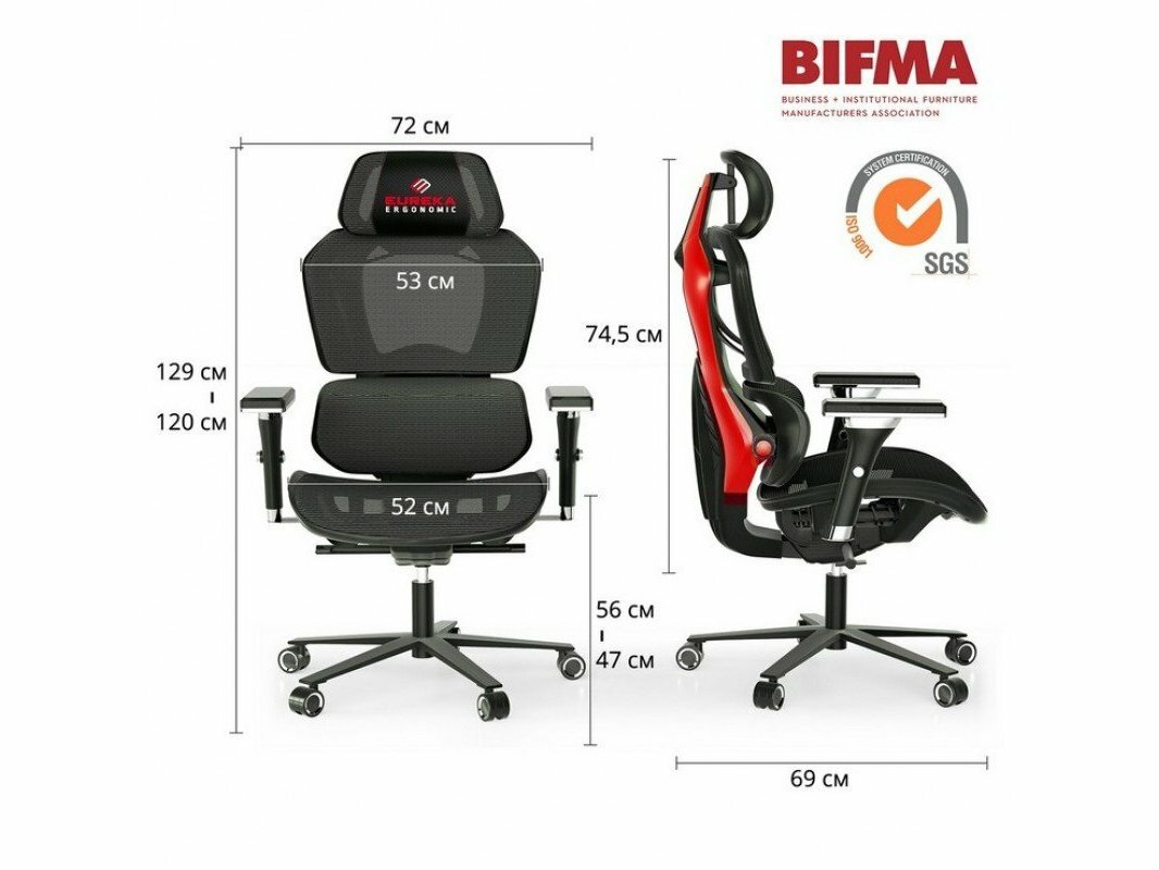 | Регулировка | высоты подголовника / высоты подлокотников / высоты сиденья / высоты спинки / глубины положения подлокотников / глубины сиденья / жесткости качания / наклона спинки / расстояния между правым и левым подлокотником / угла подлокотников |
