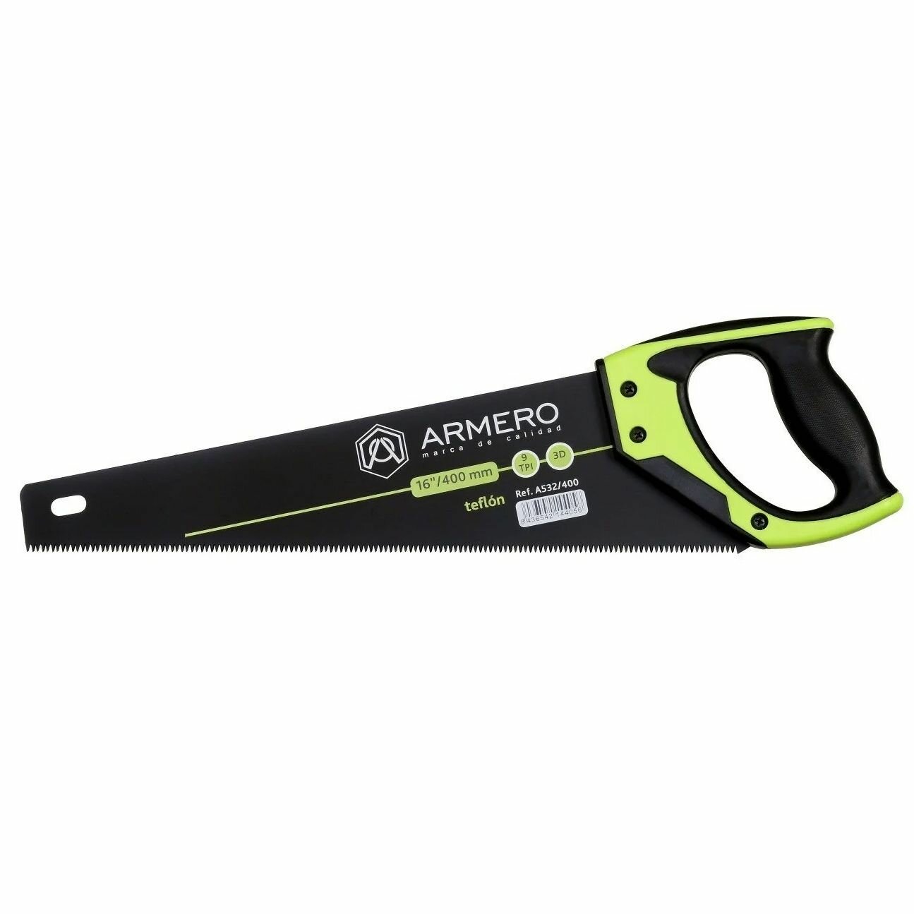 Ножовка по дереву ARMERO 400 мм 3d заточка средний зуб 9 TPI информация: