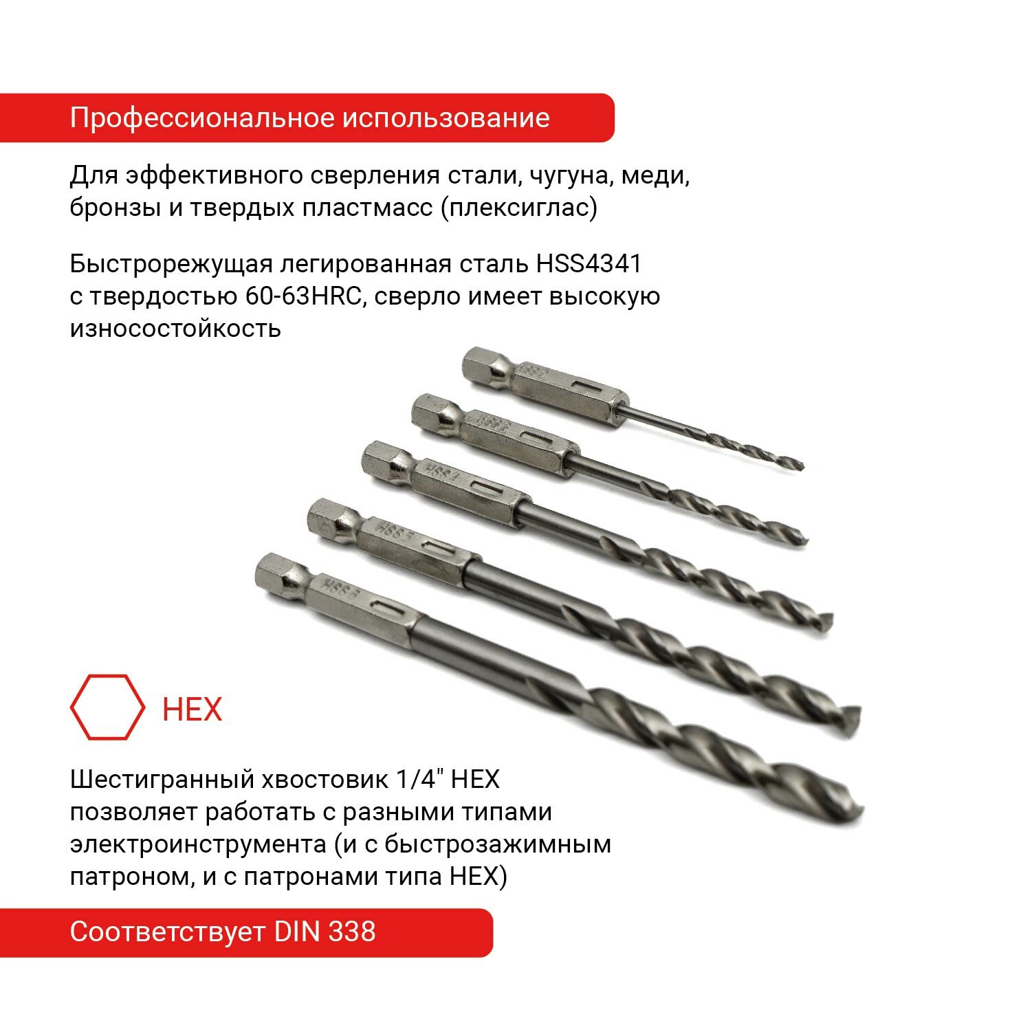 Набор сверл по металлу c шестигранным хвостовиком 5 шт VIRA 609 ₽