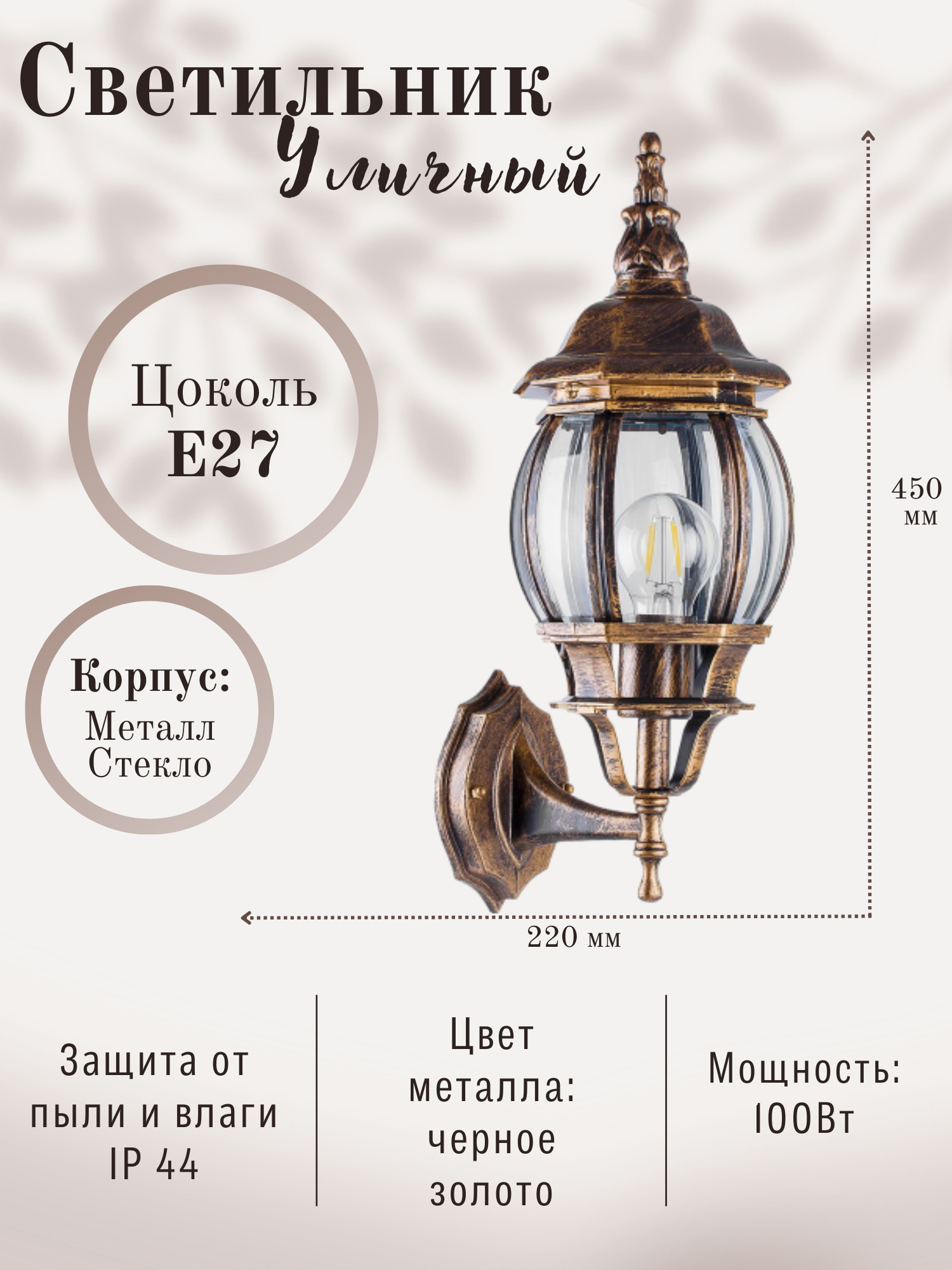 Садово-парковый светильник Feron , 100W 230V E27 черное золото, 8101 информация: