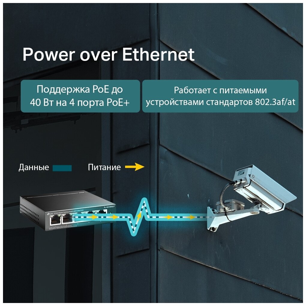 TP-Link 5-портовый гигабитный неуправляемый коммутатор с 4 портами PoE+, металлический корпус, настольная установка, бюджет PoE — 40 Вт. 3 747 ₽