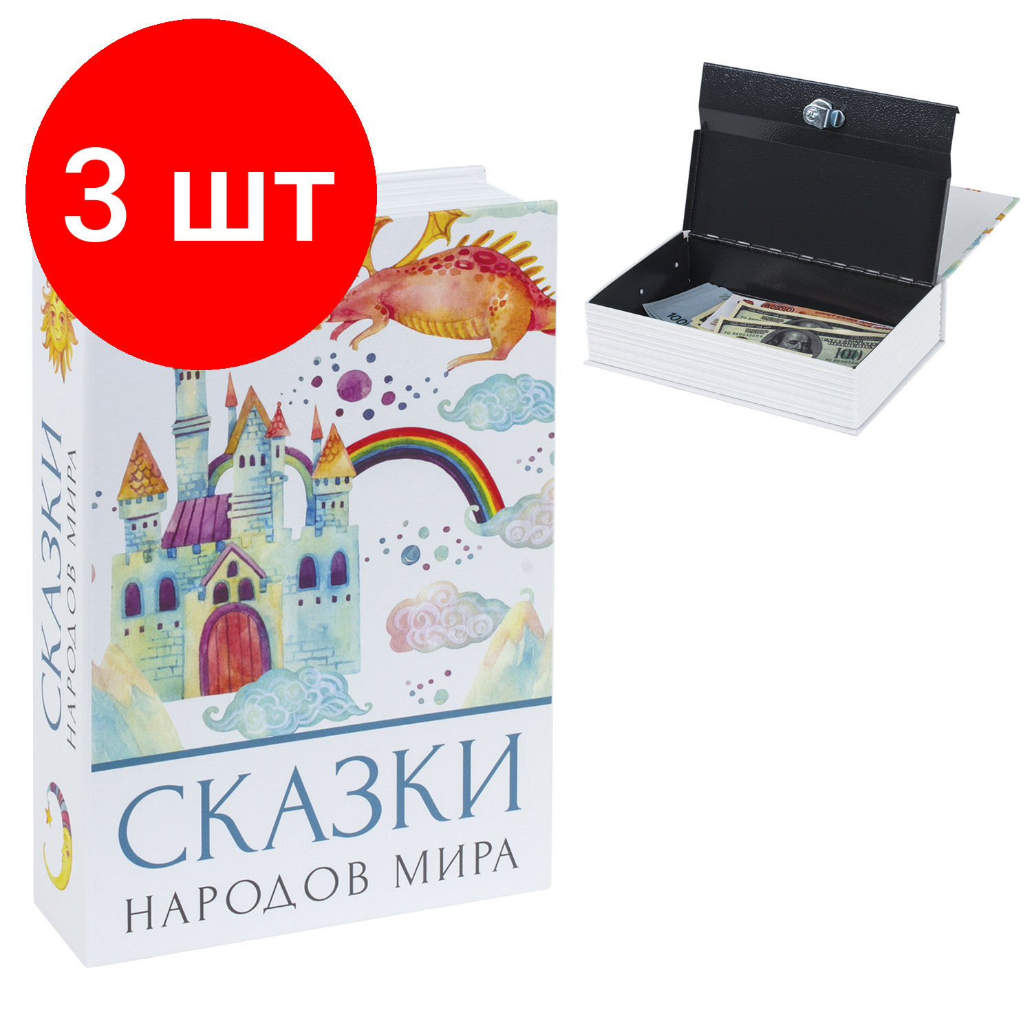 Комплект 3 шт, Сейф-книга "Сказки народов мира", 55х155х240 мм, ключевой замок, BRAUBERG, 291054 информация: