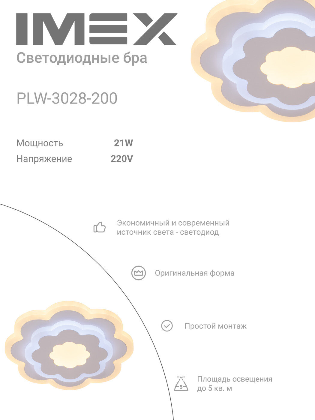 Настенный светильник светодиодный белый Imex PLW-3028-200 информация: