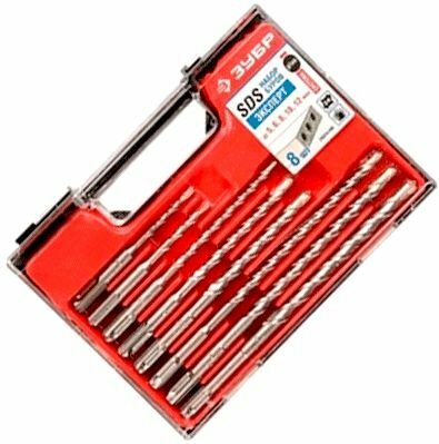 ЗУБР Набор буров SDS-plus 8 шт: 5 х 110, 6 х 110, 6 х 160, 8 х 160, 10 х 160, 8 х 210, 10 х 210, 12 х 210 мм, Профессионал