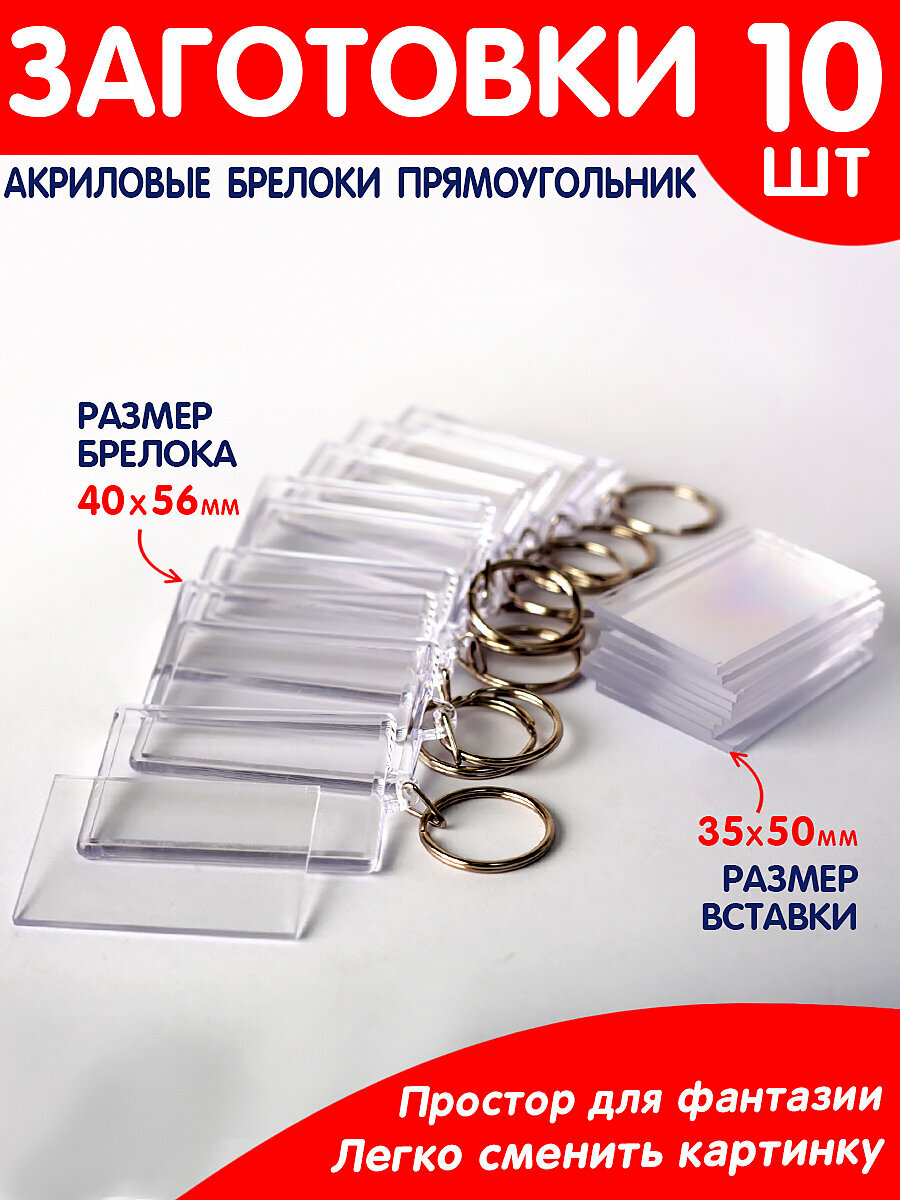 10 цен на Набор заготовок брелоков 10 шт. Прямоугольник / Заготовка акрилового брелока / Акриловый брелок/Поделка брелок